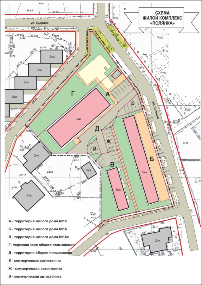На территории жилого комплекса Полянка организованы парковочные места. Земельные участки, на которых расположены эти парковки находятся в частной собственности и могут быть приобретены для целей парковки автомобиля.